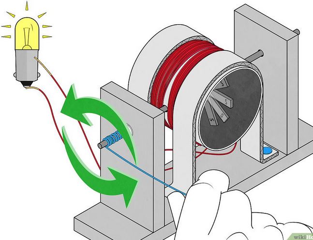 Kamu bisa menggunakan bahan dasar yaitu dinamo dengan tegangan kecil untuk mencoba berlatih membuat pembangkit listrik.